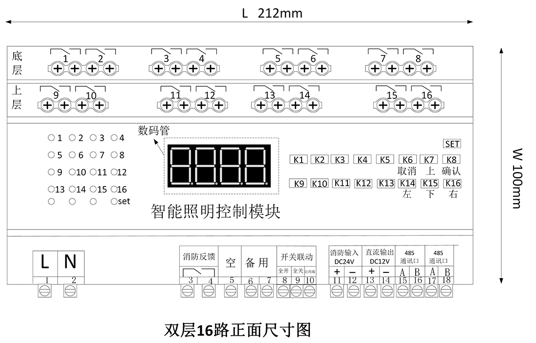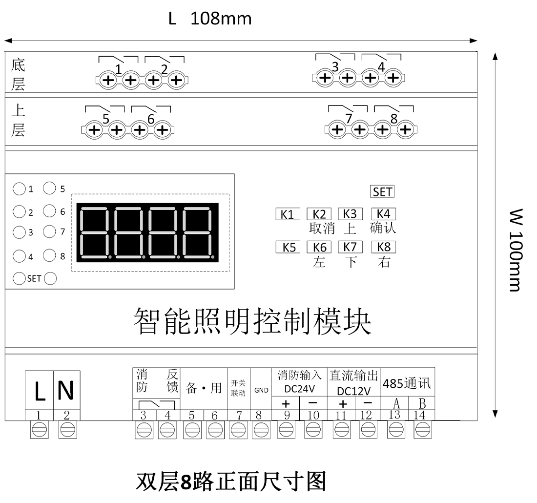 控制模块可以广泛应用于酒店、场馆、火车站、停车场、机场、商业大楼、餐厅等照明场。控制模块集成一键总开功能、消防联动功能,可以根据照明场合,灵活配置功能。支持本地按键控制,人机交互性好。支持网关通信,可通过上位机、手机app实现远程控制和配置场景一键配置。