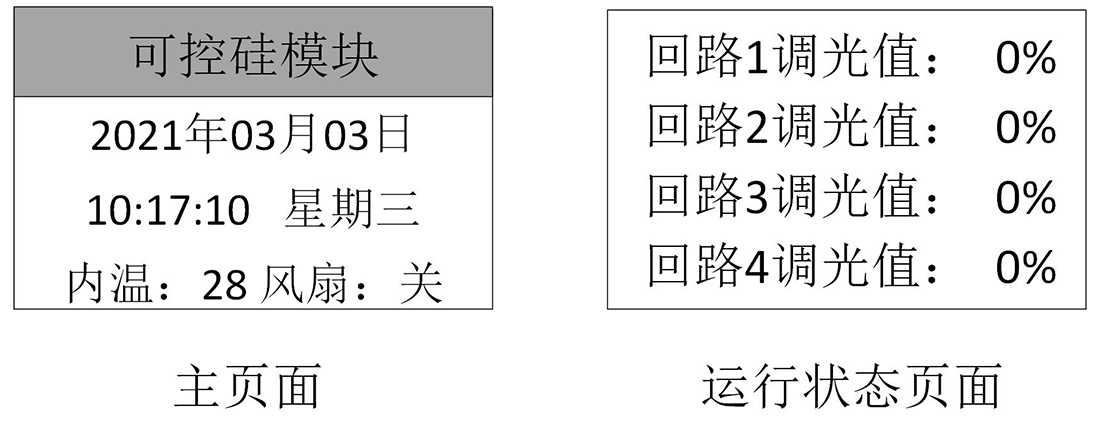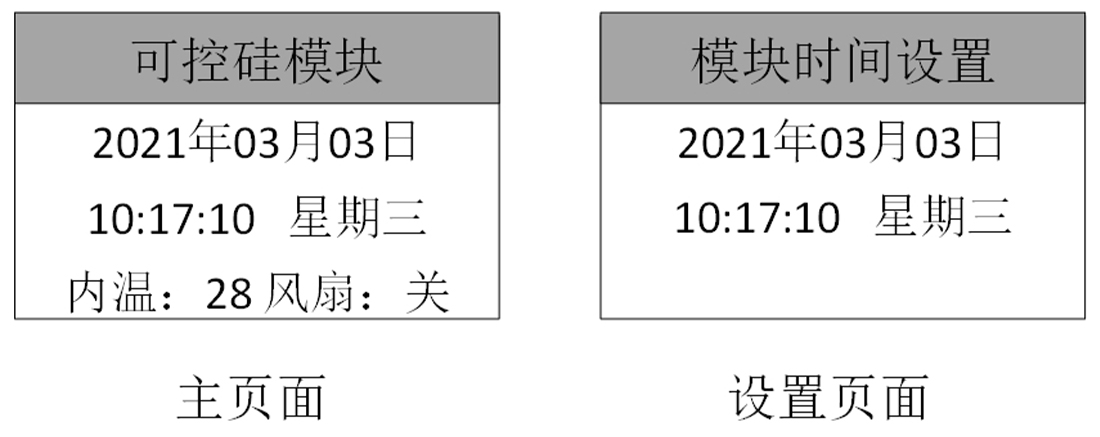 菜单界面依次为主界面、设置界面、运行状态显示界面。进入设置模式后,可以通过“左”、“右”键进行切换。不同的界面可以通过 “上”、“下”键进行信息切换。切换界面如图1所示。