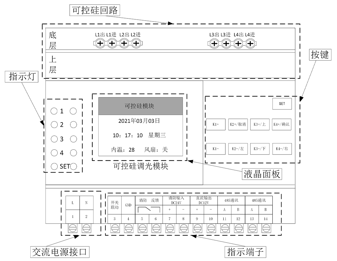智能时控可控硅模块可以广泛应用于酒店、场馆、火车站、停车场、机场、商业大楼、餐厅等照明场景。模块集成时间控制、调光控制、消防联动功能,可以根据照明场合,灵活配置功能。配备液晶屏幕,支持本地按键控制,人机交互性好。支持网关通信,可通过上位机、手机app实现远程控制和配置场景一键配置。
