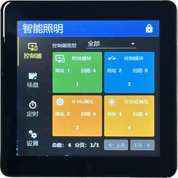 如图为控制器列表界面,界面显示已经添加的控制模块,可添加的模块有单层/双层控制模块、时控模块、调光模块、可控硅模块。点击控制器类型,即可完成对控制器的筛选。