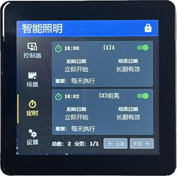 点击定时图标,即可进入场景定时管理界面,在该界面可以简单查看目前设定的定时列表以及场景定时开关状态。
