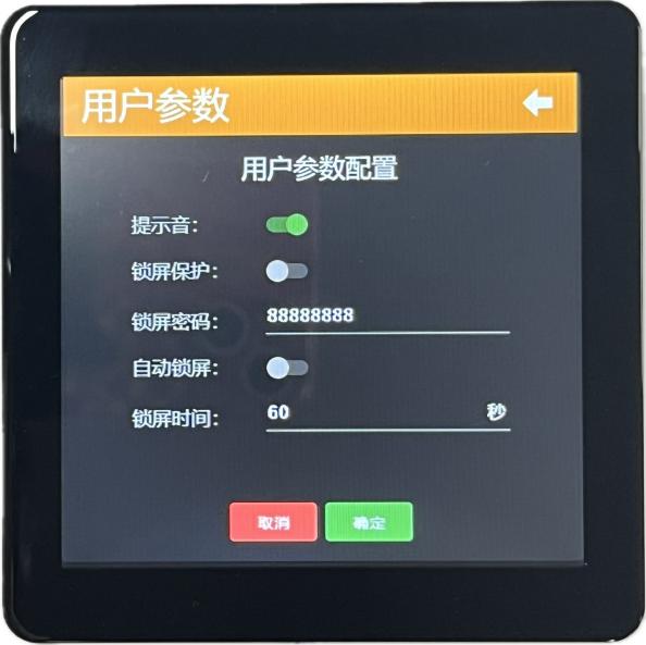用户参数设置:在该界面中,可以设置提示音、锁屏相关设置。