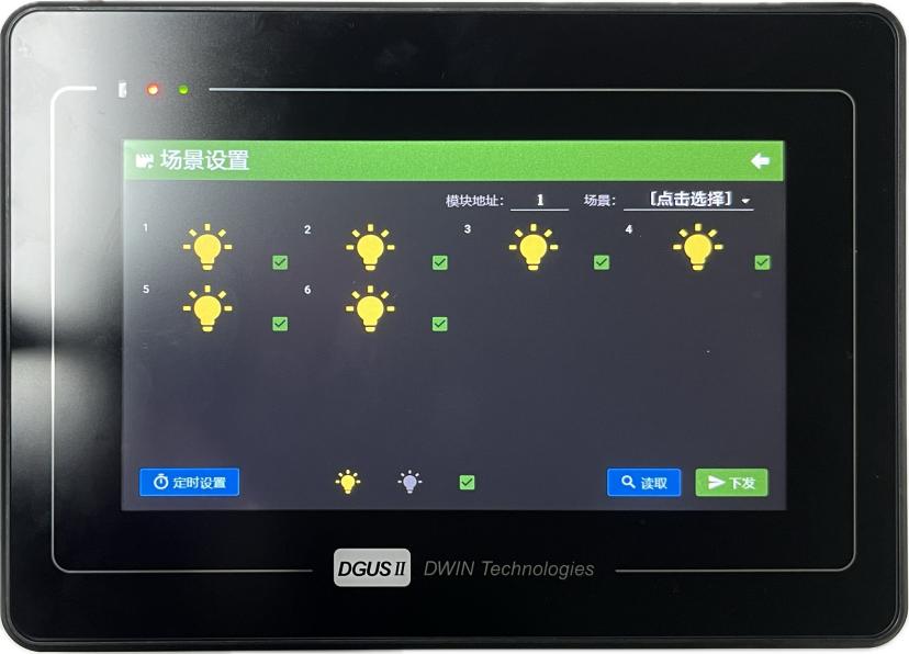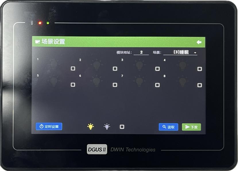 采用钢化玻璃触摸材质,超长按键寿命,时尚美观高档。面板的按键通过RS485总线与电脑系统软件编程实现 不同的功能 不同的场景设置如:全开、全关触发场景、 组控制、 交叉控制多点控制各个模块等,可自由组合多个面板实现多个场景设置。面板的总电源12V要由外部提供。