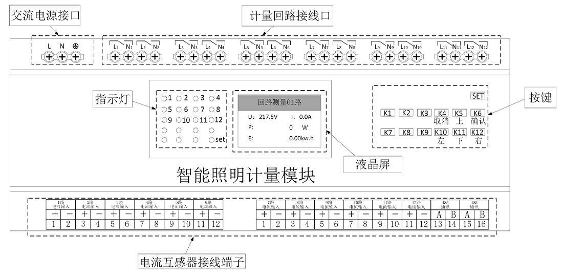 智能照明计量模块是一种专门用于测量、记录和传输电能消耗的设备,配合智能照明控制模块一起使用,对场景的控制和电能实时监测,可以实现对生产流程、设备运行、产品质量等重要关键点的计量和监测,从而提高生产效率和产品质量。