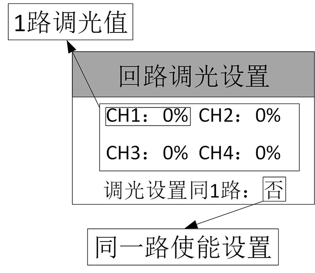 按键调光模式下,第一回路调光值减少键。 |