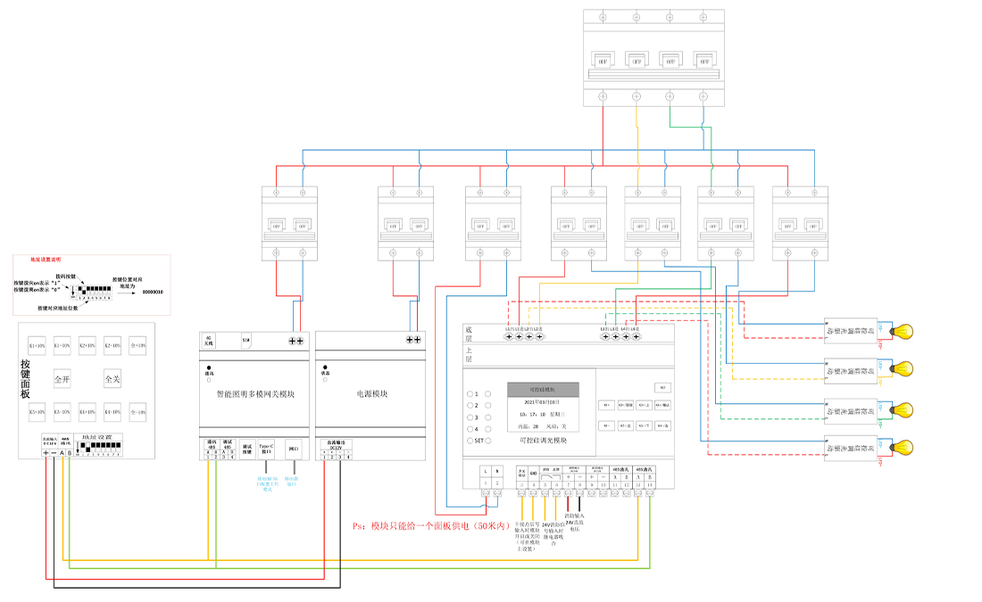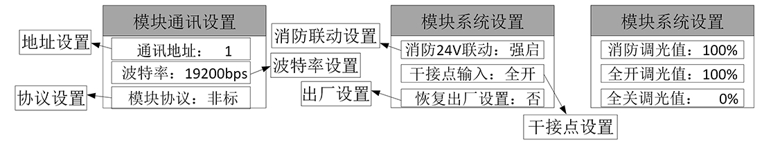 灯亮表示模块进入设置模式,灯灭表示模块进入调光模式 |