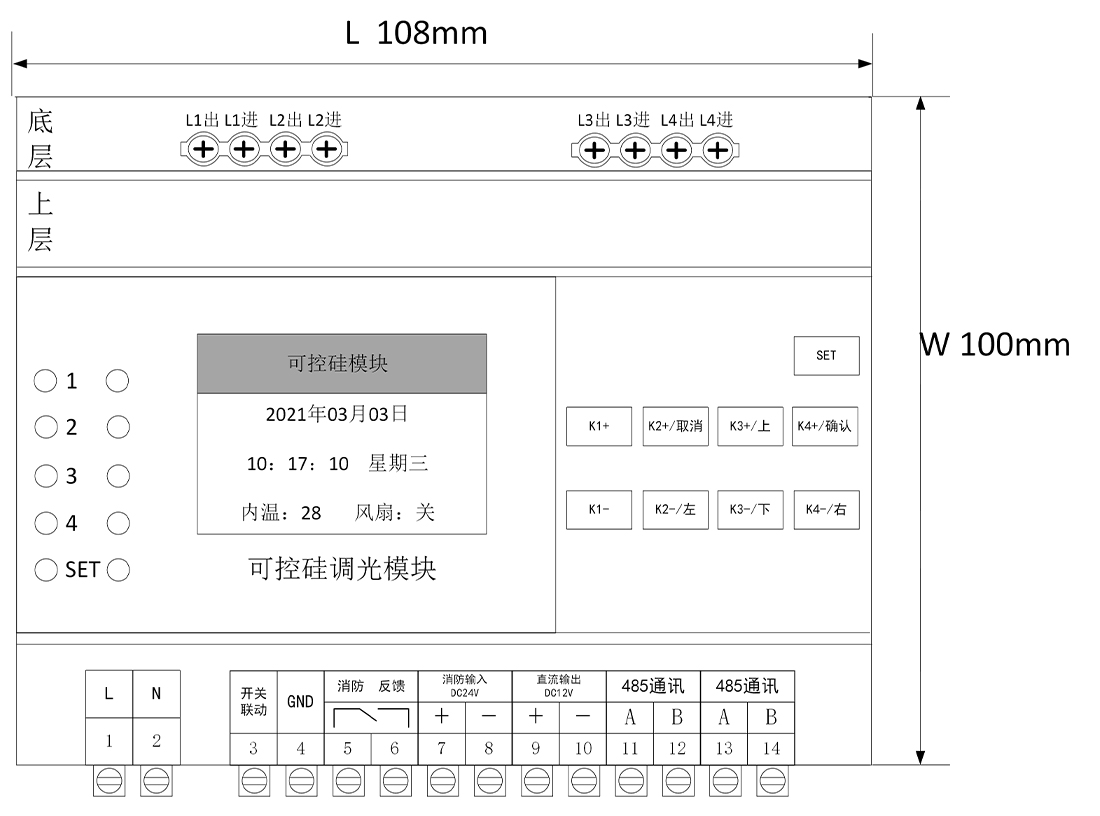 智能时控可控硅模块可以广泛应用于酒店、场馆、火车站、停车场、机场、商业大楼、餐厅等照明场景。模块集成时间控制、调光控制、消防联动功能,可以根据照明场合,灵活配置功能。配备液晶屏幕,支持本地按键控制,人机交互性好。支持网关通信,可通过上位机、手机app实现远程控制和配置场景一键配置。
