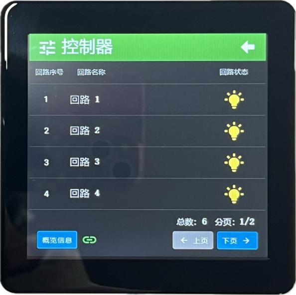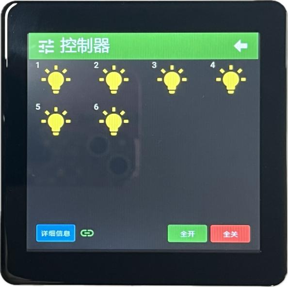 点击各模块名称进入模块设置界面,如图为照明模块的设置界面,点击灯泡图标即可控制对应通道开关,点击全开、全关按钮可实现一键全开全关。
