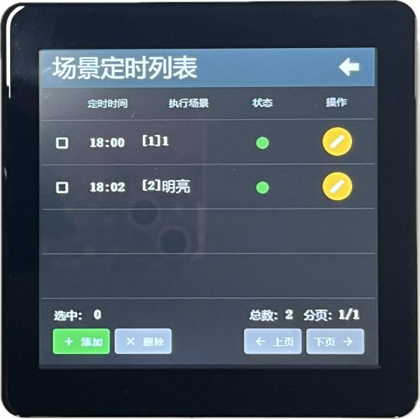 点击定时图标,即可进入场景定时管理界面,在该界面可以简单查看目前设定的定时列表以及场景定时开关状态。