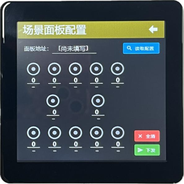 智慧屏连接不同类型的触摸面板,点击读取即可读取面板界面,点击下图中的虚拟按键即可完成实际触摸面板的场景设置,点击下发完成配置。