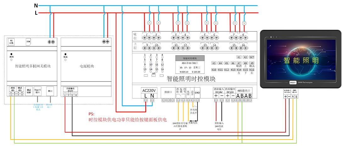 采用钢化玻璃触摸材质,超长按键寿命,时尚美观高档。面板的按键通过RS485总线与电脑系统软件编程实现 不同的功能 不同的场景设置如:全开、全关触发场景、 组控制、 交叉控制多点控制各个模块等,可自由组合多个面板实现多个场景设置。面板的总电源12V要由外部提供。
